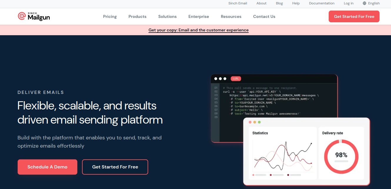 Mailgun stands out in 2024 as a robust choice for developers and businesses that prioritize high deliverability and technical control over their email campaigns. Specializing in transactional and bulk email sending, Mailgun offers a powerful API-first service that integrates seamlessly with various applications and systems.