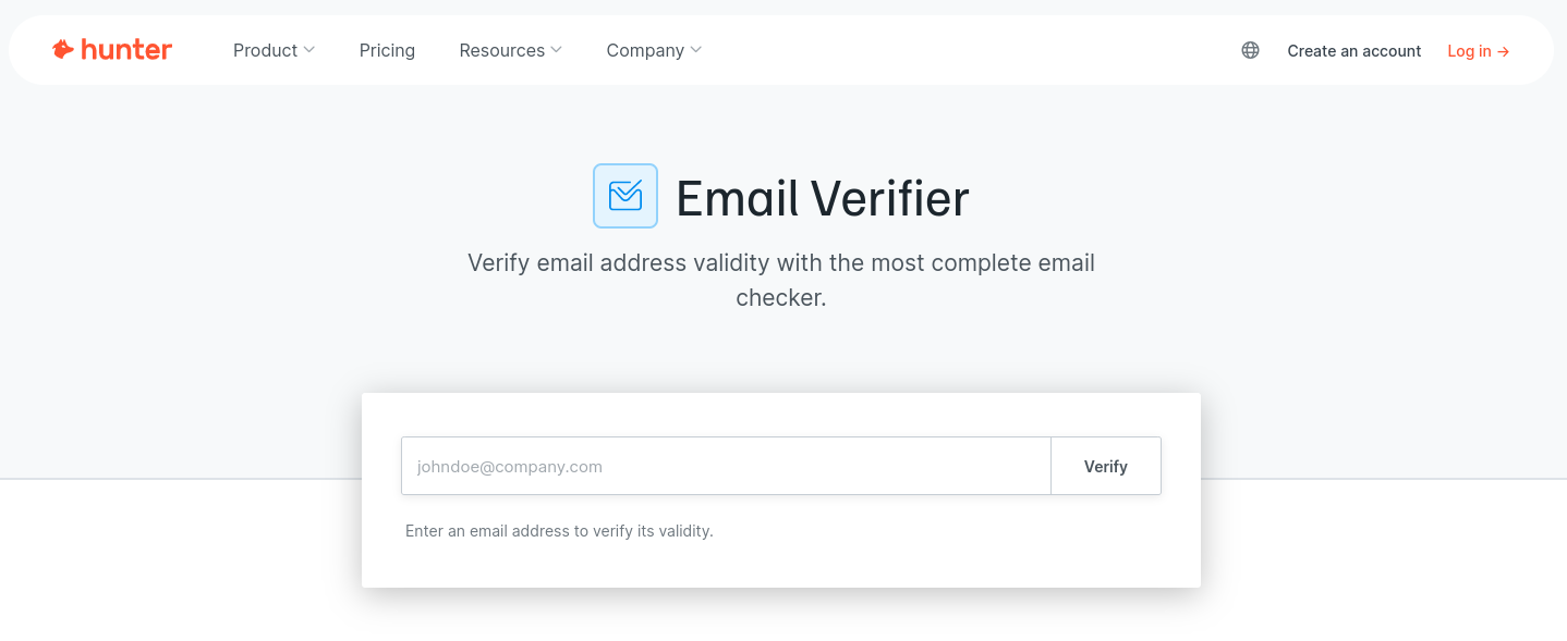 Hunter is a reliable and efficient email checker that provides accurate results. Their Email Verifier is designed to ensure thorough validation at multiple levels, including email format, domain information, mail server responses, and comparison with their extensive database of professional email addresses. With Hunter, users can trust in the completeness and accuracy of their email verification process, allowing them to maintain high-quality email lists and improve their overall email deliverability.