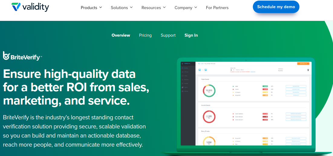 BriteVerify is the trusted contact verification solution that ensures high-quality data, resulting in improved ROI for your sales, marketing, and service efforts. With a proven track record in the industry, BriteVerify offers secure and scalable validation services to help you build and maintain an actionable database. By verifying and validating your contact data, BriteVerify enables you to reach more people and communicate more effectively. With BriteVerify, you can confidently engage with your audience, knowing that you have accurate and reliable contact information at your fingertips.