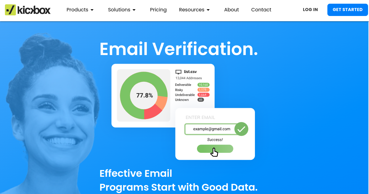 Supercharge your email program with Kickbox, the trusted email verification tool that ensures good data from the start. Whether you need to verify emails in bulk or in real-time through an API, Kickbox has got you covered. With its reliable email verification service, you can verify emails from your list or API, ensuring the accuracy and deliverability of your email campaigns. Start your email programs on the right